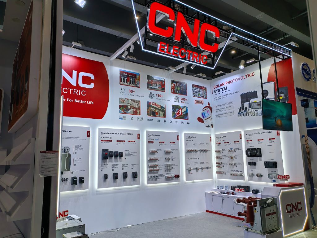 CNC Electric’s booth featured an extensive range of low-voltage electrical products, spanning PV solutions and new energy products, smart circuit breakers and intelligent devices, automatic transfer switches (ATS), molded case circuit breakers (MCCB), contactors, motor control products, and final distribution solutions.