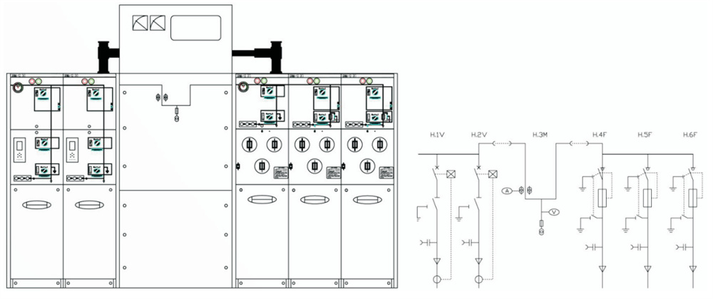 The switch is divided into fixed module and expandable module group. In the same SF6 insulated air chamber, up to6 modules can be configured. Switching cabinets with more than 6 modules must be connected with the expansion busbar to realize the semi-module. Structure, full module configuration can also be achieved by using an extended bus between all modules. Through the combination of different functional modules, a simple to complex power distribution scheme can be formed to meet various configuration requirements in the secondary substation and the opening and closing.
